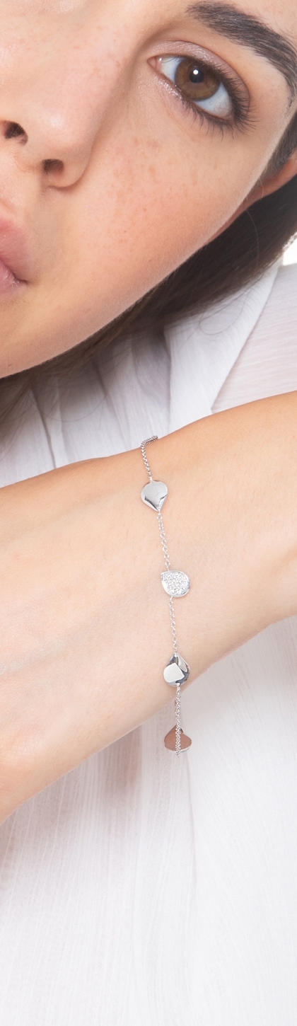 Bracelet en or blanc 18 carats avec 4 gouttes et diamants, 22 cm