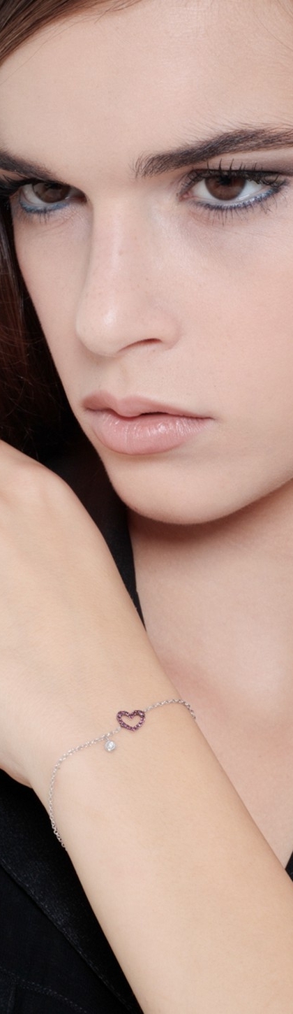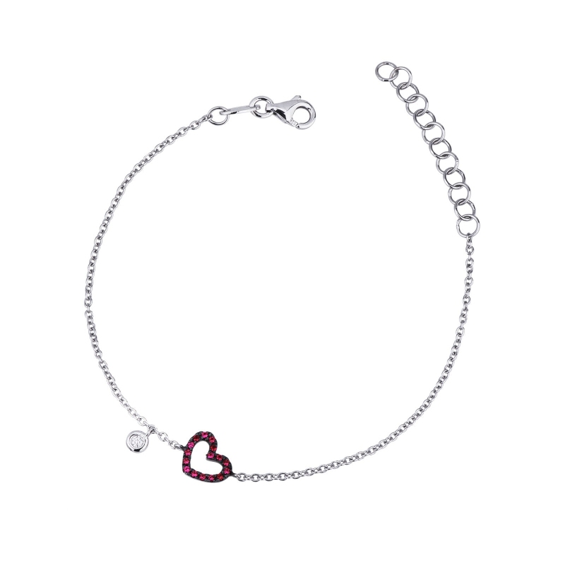 Bracelet en or blanc 18k avec pendentif en forme cœur rubis