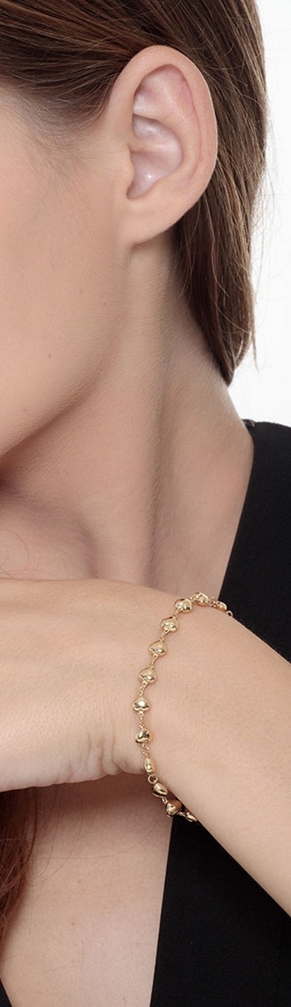 Bracelet en or jaune 18k avec maillon en forme de petits cœurs, 17 cm