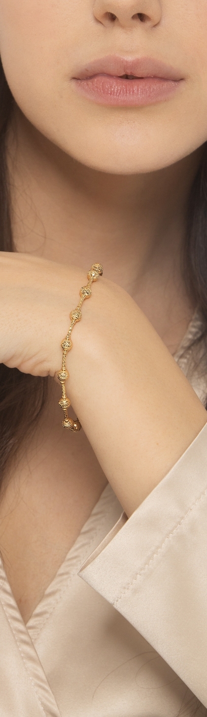 Bracelet Or Jaune 18k avec perles diamantées alternees 19.5 cm