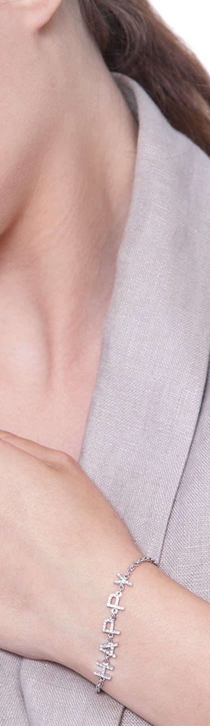 Bracelet personnalisé HAPPY en or blanc 750 et diamants