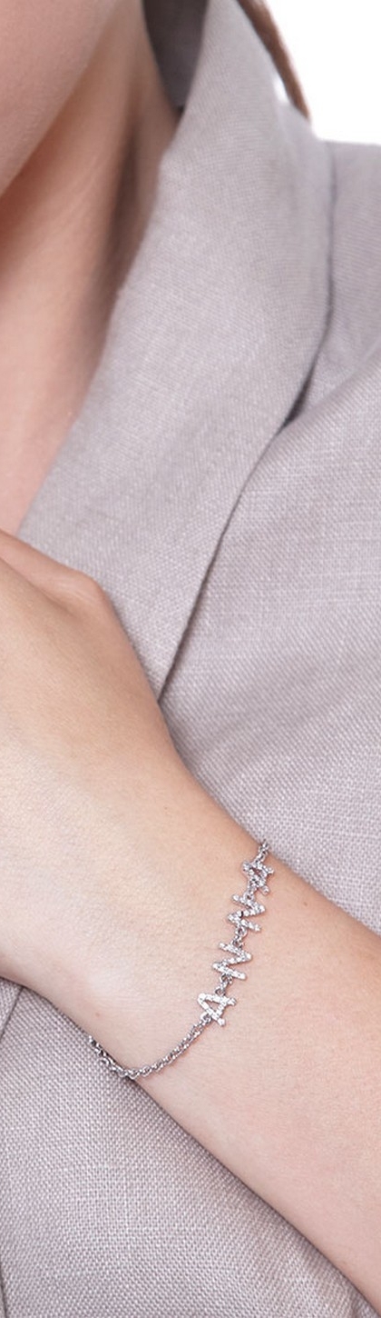 Bracelet avec lettres en or blanc 750 et diamants SARA