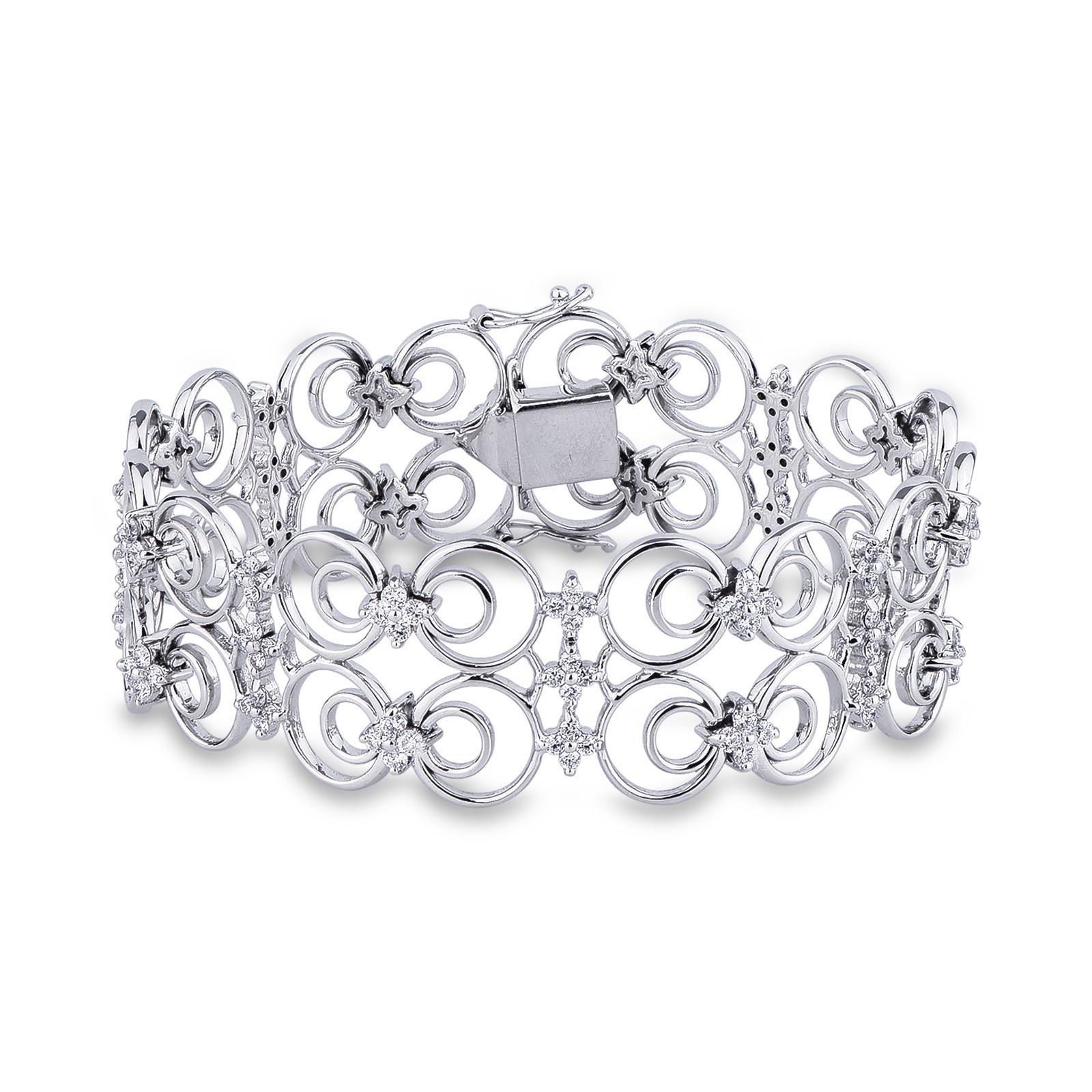 Bracelet en or blanc 18k à doubles mailles avec cercles et diamants
