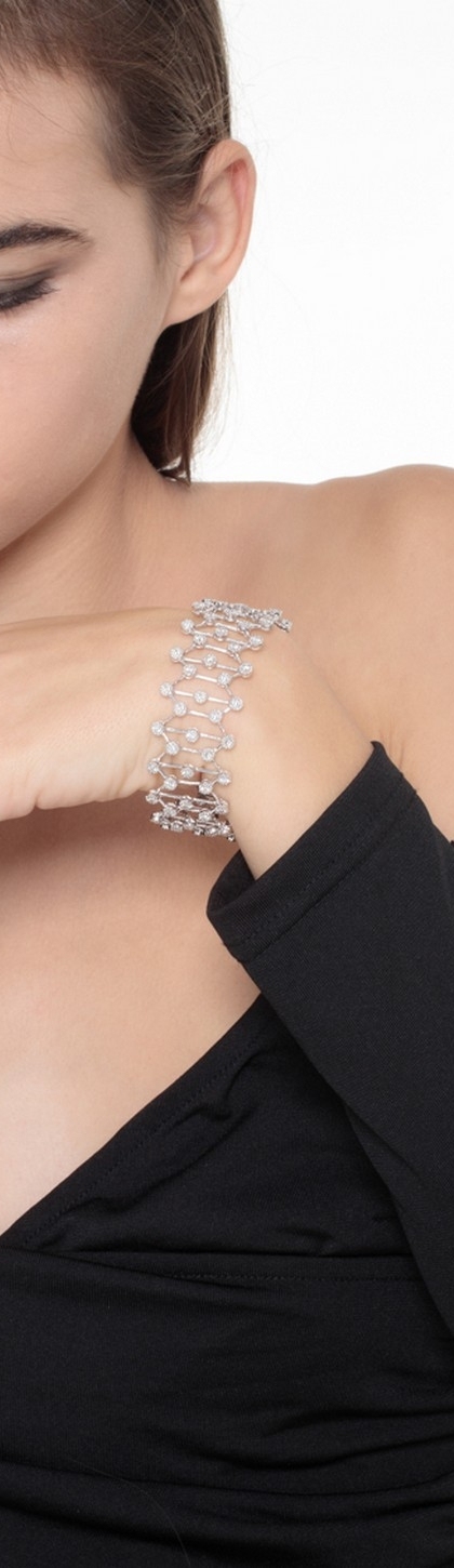 Bracelet en or blanc 18k avec chatons souples et diamants