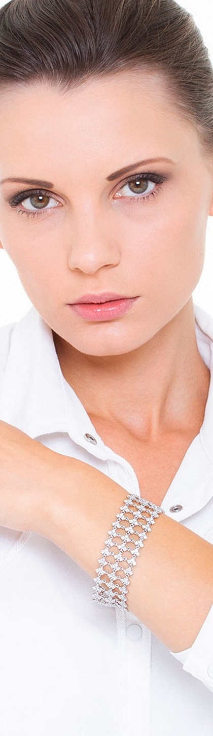 Bracelet en or blanc 18k avec maillons a trois chatons et diamants
