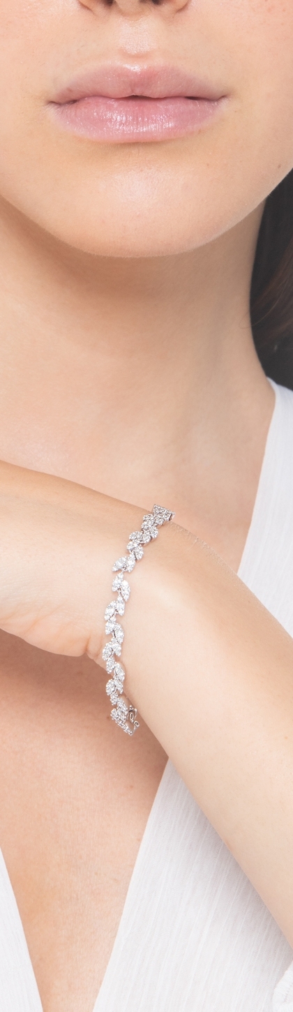 Bracelet en or blanc 18k motif feuilles diamants