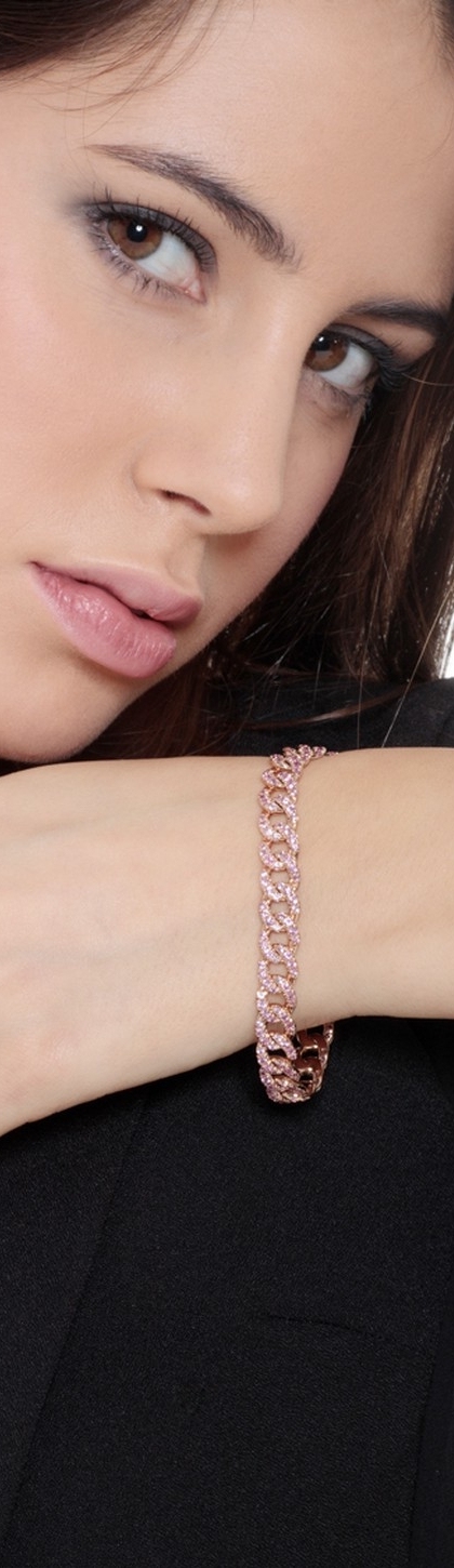 Bracelet maille gourmette en or rose 18k avec saphirs roses