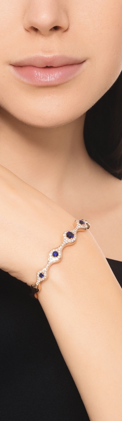 Bracelet jonc Or Rose 750 Saphirs Bleus Diamants