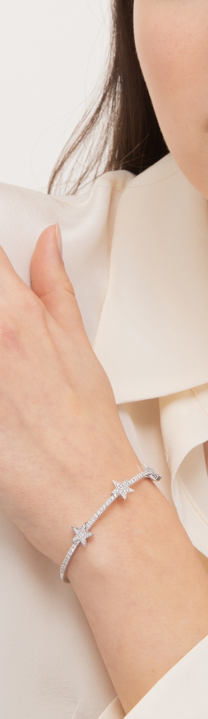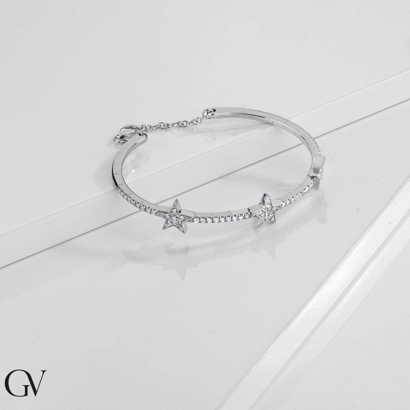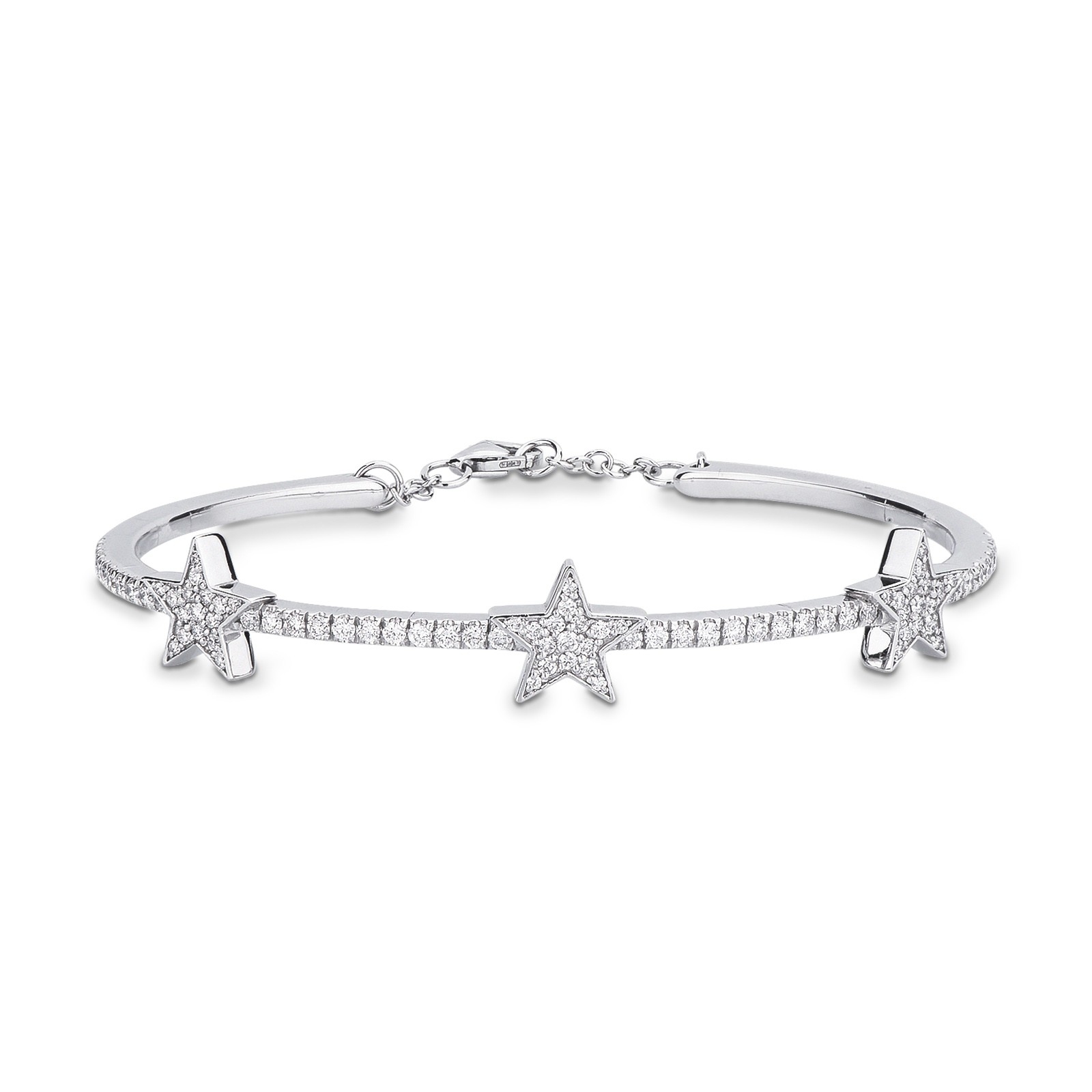 Bracelet or blanc 18k avec trois étoiles en diamants