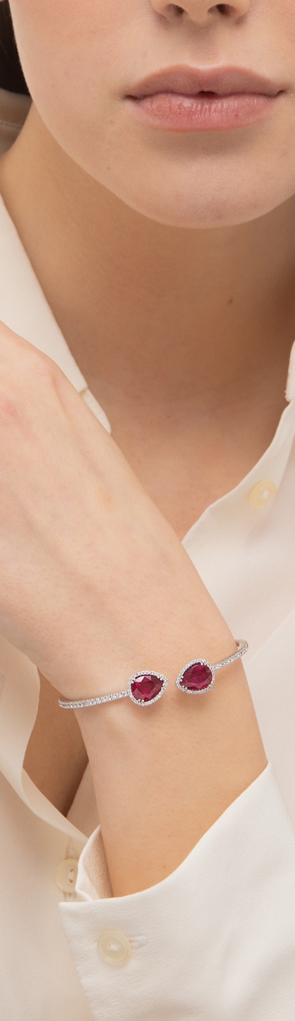 Bracelet ressort en Or Blanc 18k avec Rubis poire et Diamants