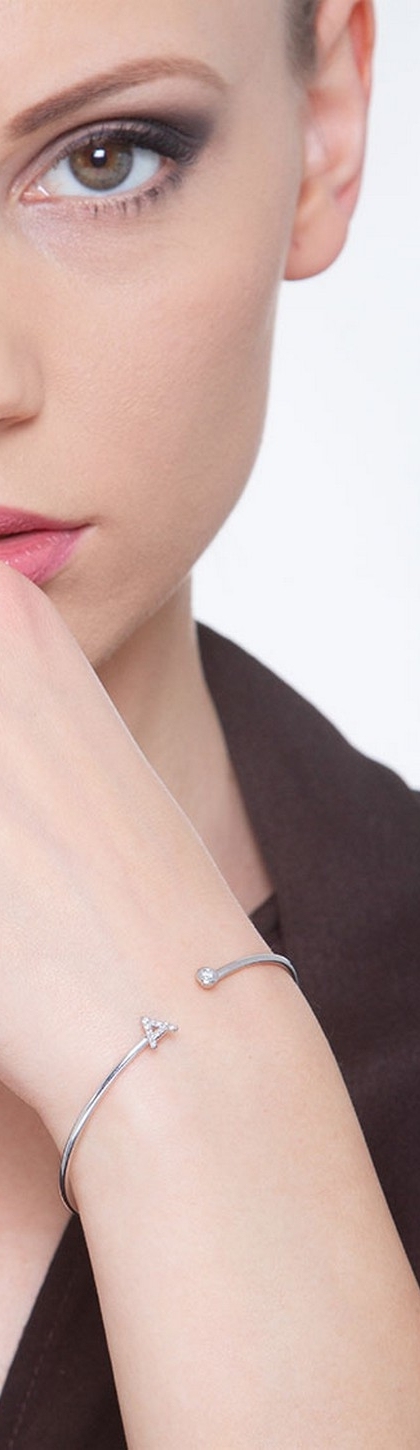 Bracelet rigide avec lettre A en or blanc 18 carats et diamants