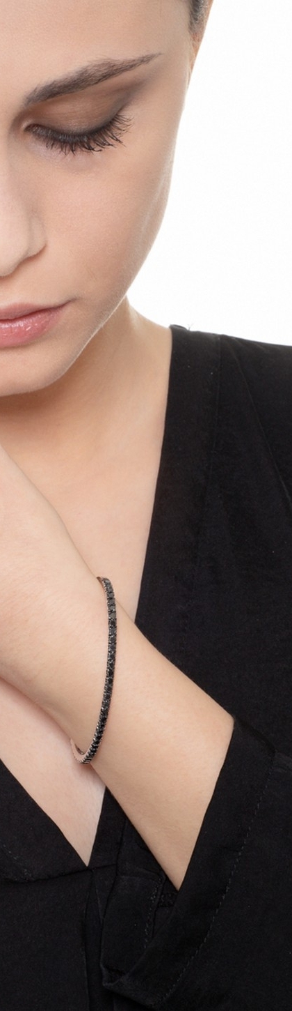 Bracelet rigide en or blanc 18 carats avec diamants noirs