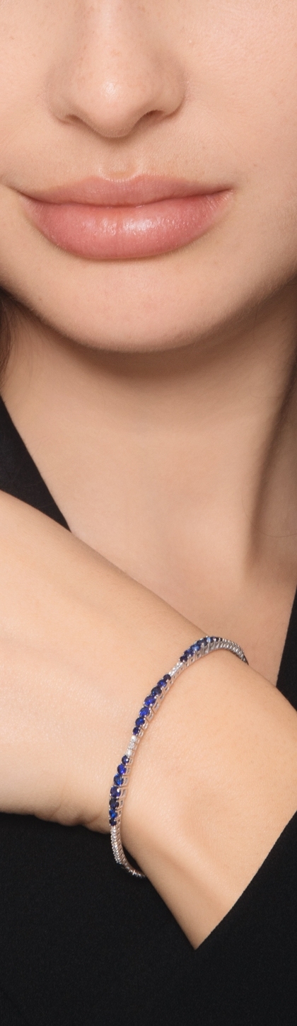 Bracelet rigide en or blanc 18k avec saphirs bleus et diamants