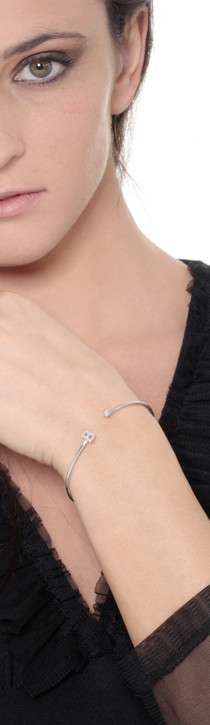 Bracelet rigide en or blanc 18k orné d’une lettre B et diamants