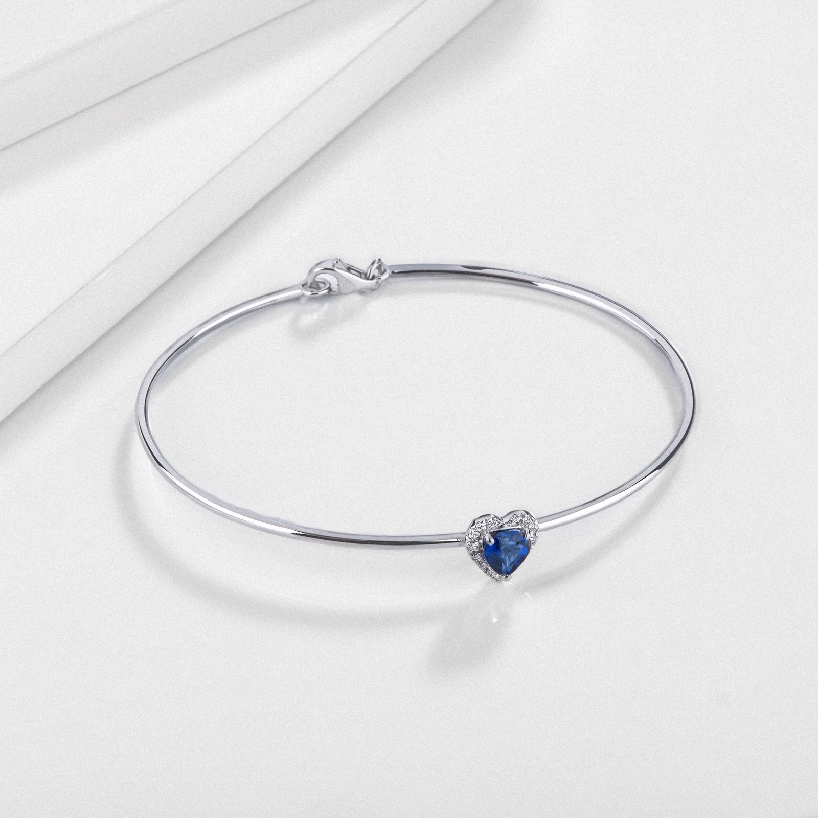 Bracelet rigide en or blanc avec saphir cœur et diamants