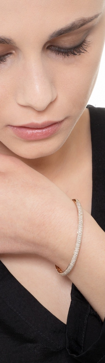 Bracelet rigide en or rose 18 carats avec pavé de diamants