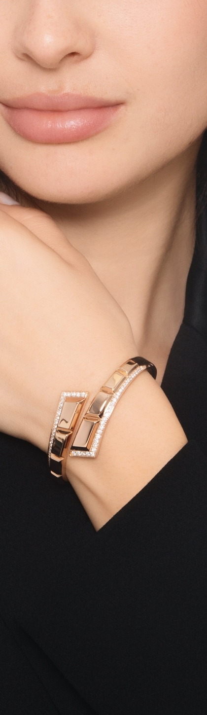 Bracelet semi-rigide à ressort en or rose 18k avec diamants