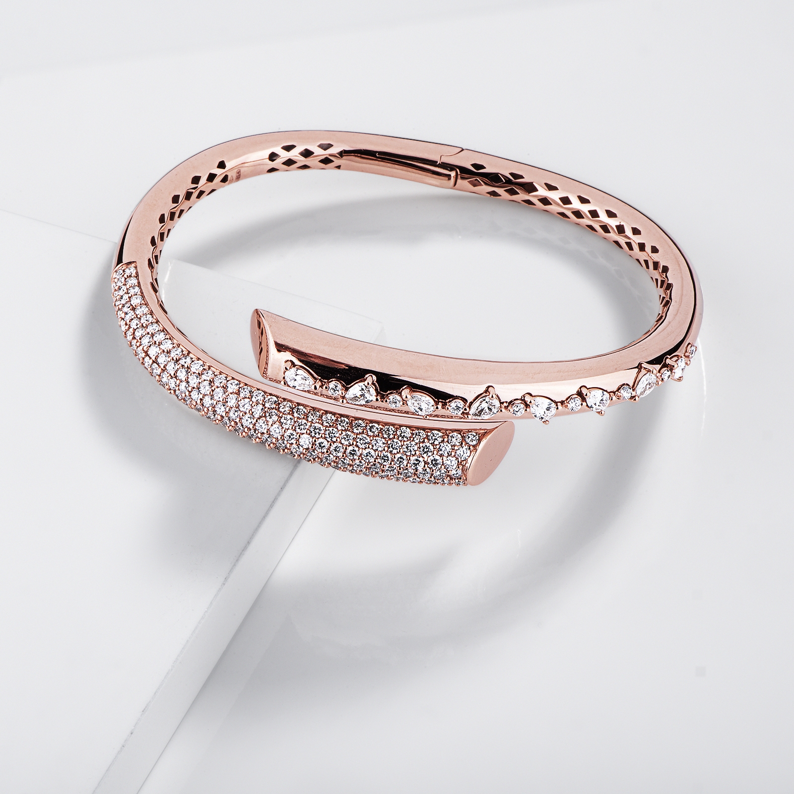 Bracelet semi-rigide design en or rose 18k avec diamants