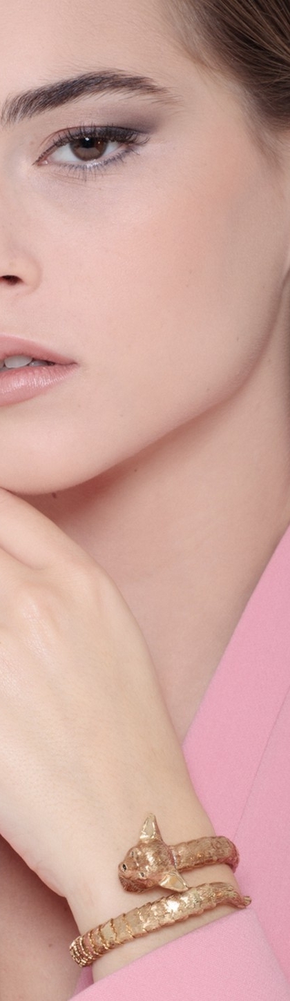 Bracelet semi-rigide en or jaune en forme de chien avec diamants