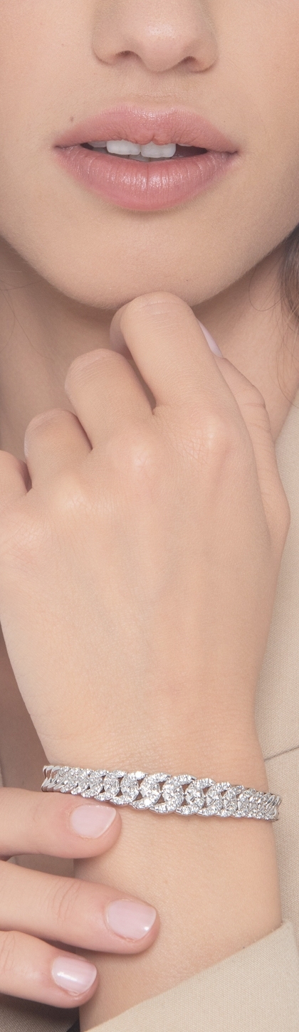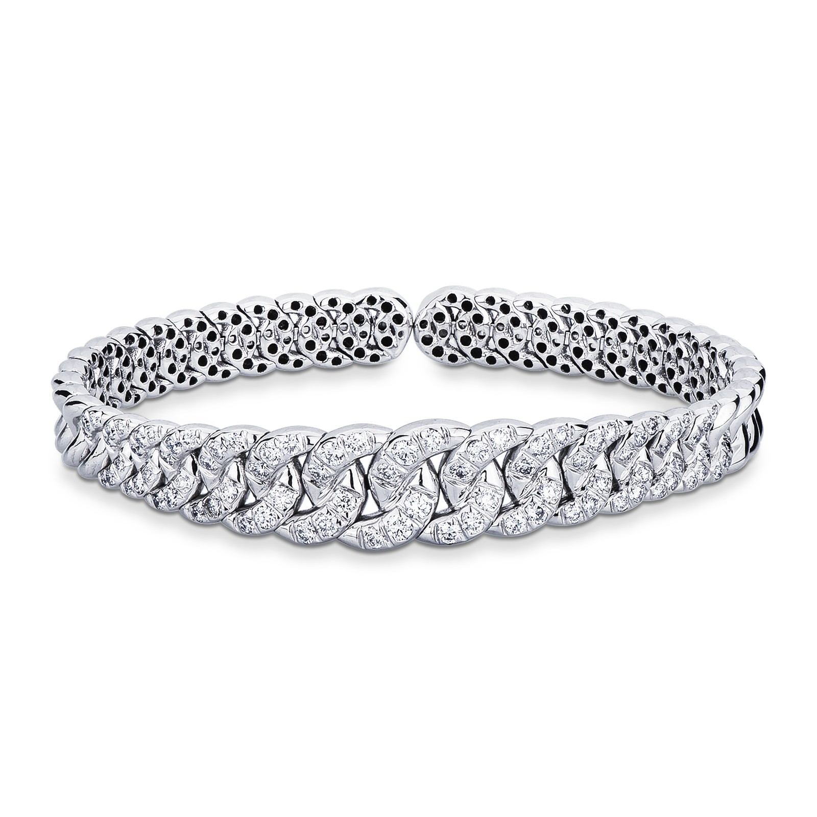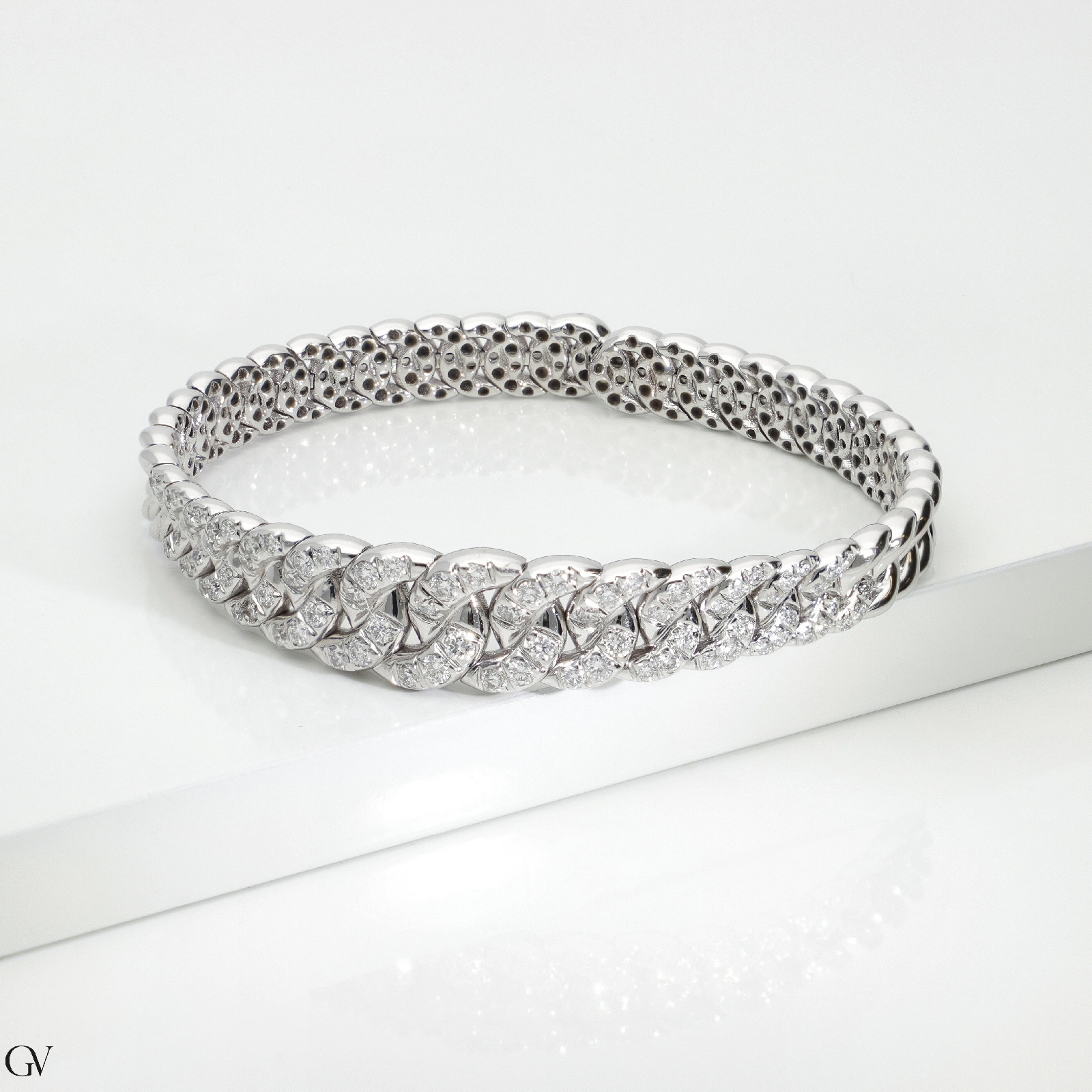 Bracelet semi-rigide groumette en or blanc 18k avec diamants