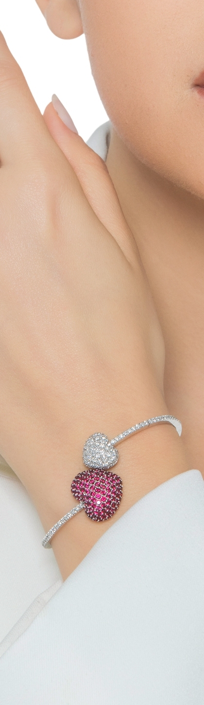TOI ET MOI Bracelet or blanc avec deux cœurs en rubis et diamant