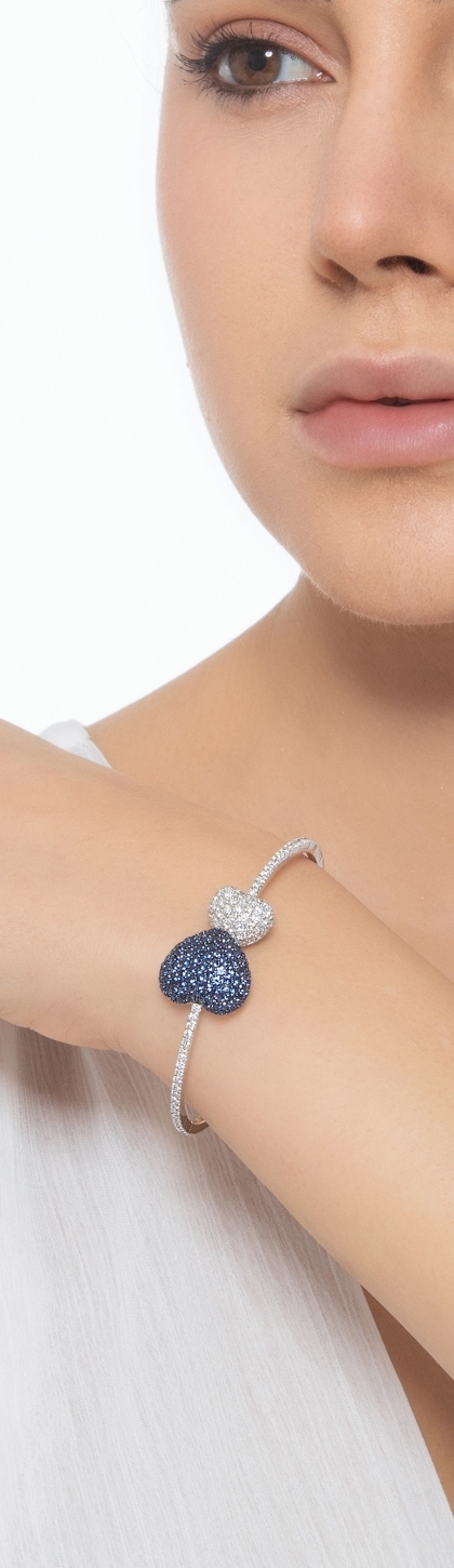 TOI ET MOI Bracelet or blanc avec deux cœurs en saphirs bleus et diamant