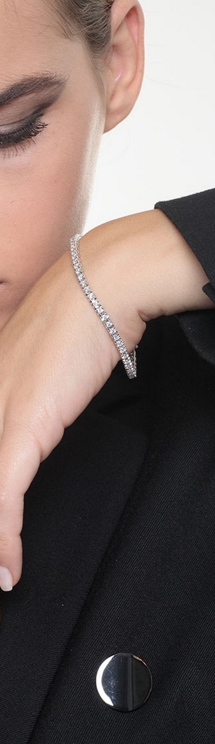 Bracelet modèle tennis en or blanc 18k serti de diamants de couleur H et de pureté VS. Le carat peut varier en fonction de la taille du bracelet. Largeur de la maille env. 3,10 mm.