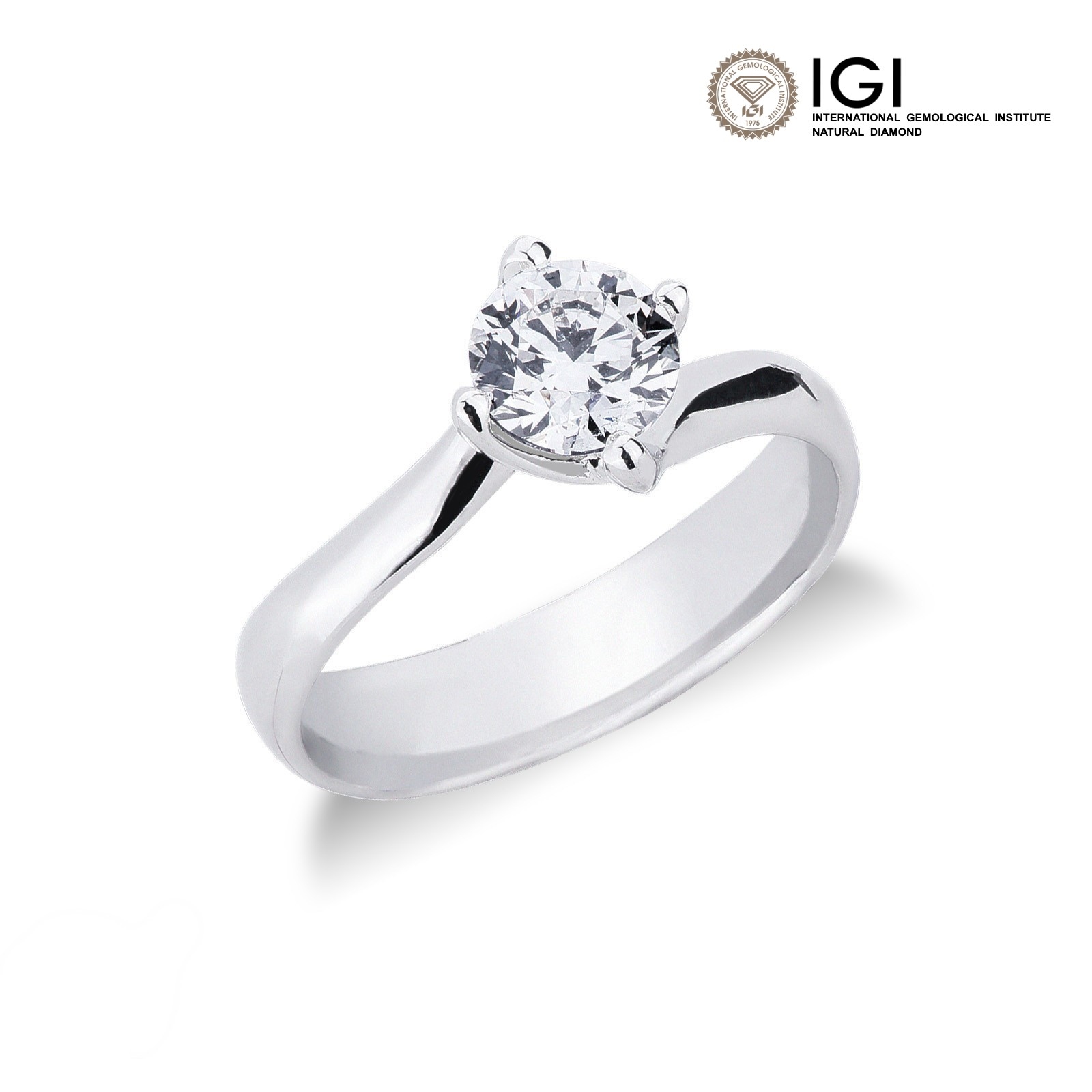 Bague Solitaire en Or Blanc 18k avec Diamant IGI de 0,90ct