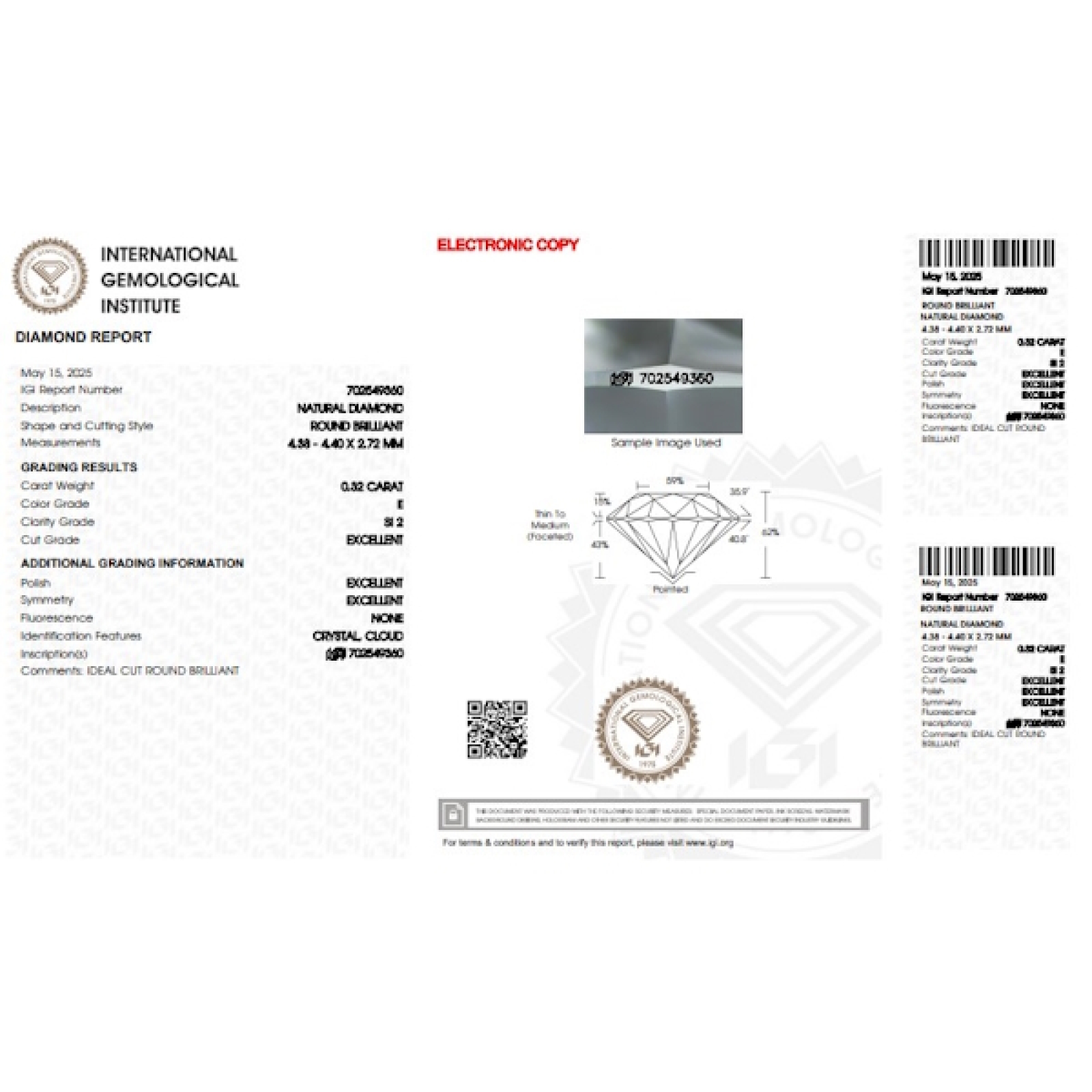 Il est délivré pour chaque bijou vendu en ligne et dans nos magasins et certifie les données suivantes: