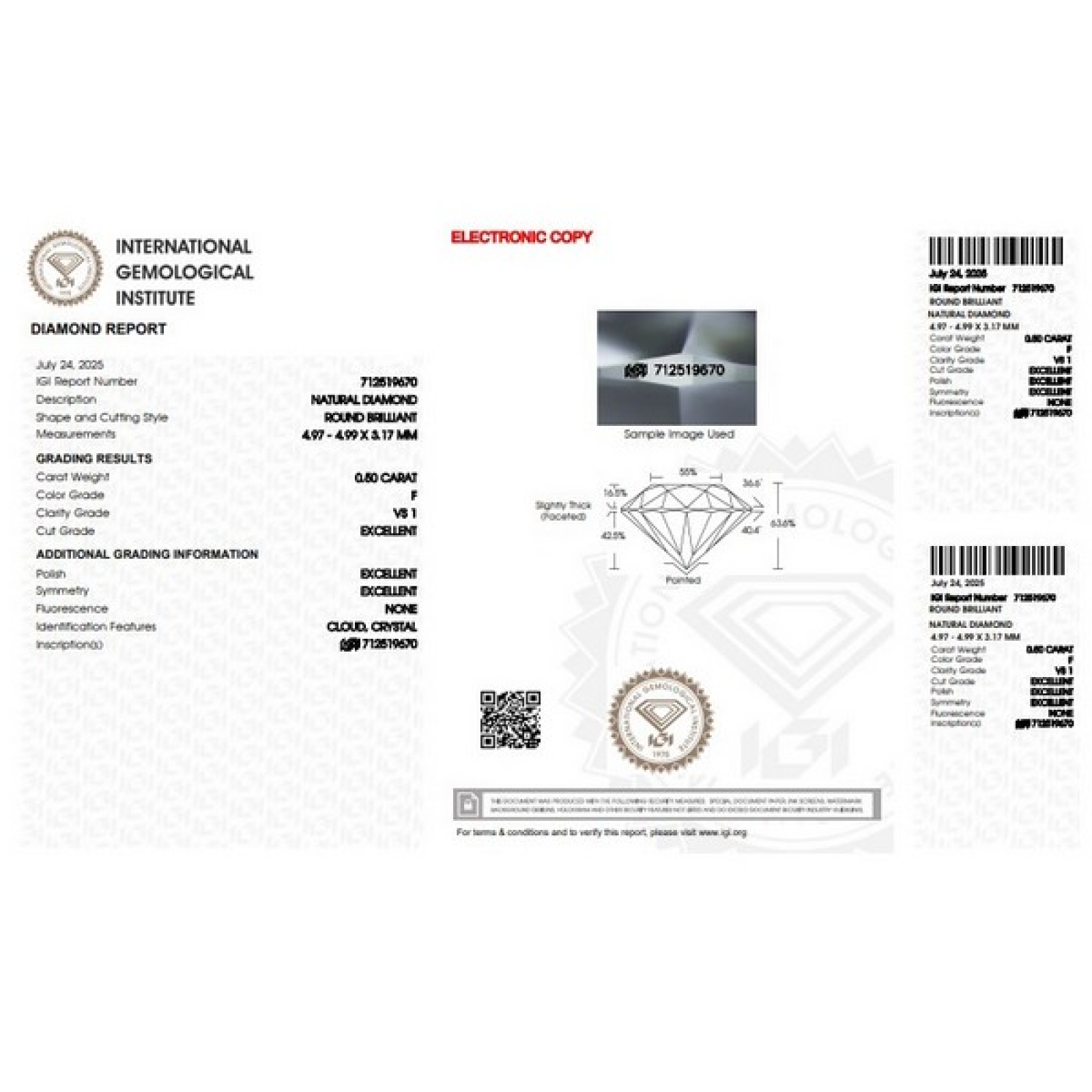 Diamant Certifié IGI 0.50 CT F VS1